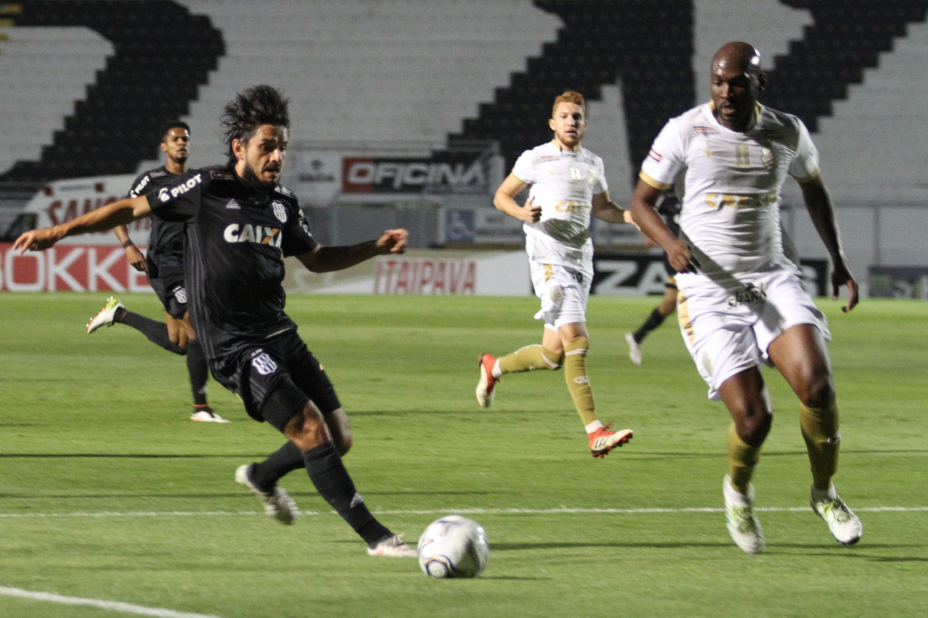 Pouco depois, aos 14′, o time de João Brigatti por pouco não chegou ao segundo gol. Roger falhou no tempo de bola e Júnior Santos saiu em velocidade, invadiu a área, mas chutou em cima do goleiro Mota.